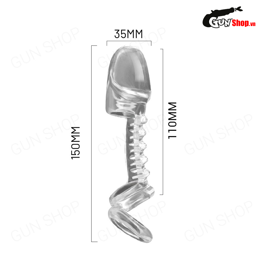 Bao cao su Wild Knight có thiết kế rất ấn tượng với phần thân trong suốt, mở hở giúp tạo cảm giác tiếp xúc tự nhiên nhất giữa hai cơ thể. Phần đầu bao được làm lớn hơn, vừa vặn ôm lấy phần đầu “cậu bé” một cách thoải mái. Toàn bộ thân bao được trang bị nhiều gờ xoắn nổi, giúp kích thích điểm G, làm tăng cực khoái cho “nàng”. Vòng đeo chắc chắn phía dưới giúp bao không bị tuột khi đang “lâm trận”, đảm bảo không gián đoạn cảm xúc.