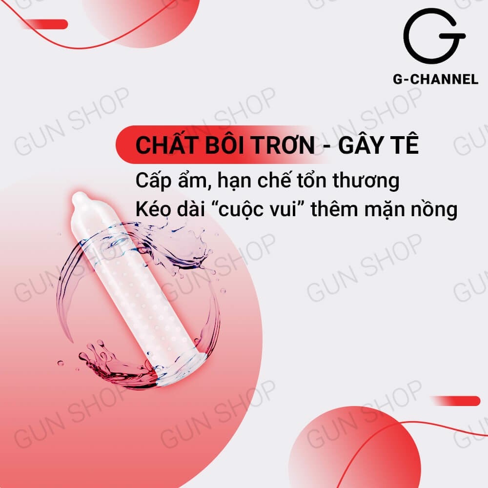 Bao cao su có thêm thành phần Benzocain – chất gây tê nhẹ, góp phần kéo dài thời gian quan hệ, giữ lửa yêu lâu bền hơn. Mùi hương nhẹ nhàng, dễ chịu cũng là một điểm cộng, giúp không gian riêng tư thêm phần lãng mạn, thoải mái.