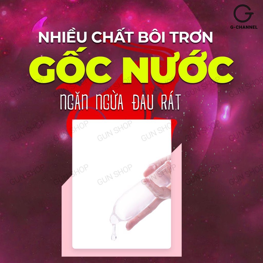 Gel bôi trơn: Lượng gel nhiều, gốc nước an toàn, giúp cuộc yêu trơn tru, mượt mà và dễ vệ sinh sau sử dụng.