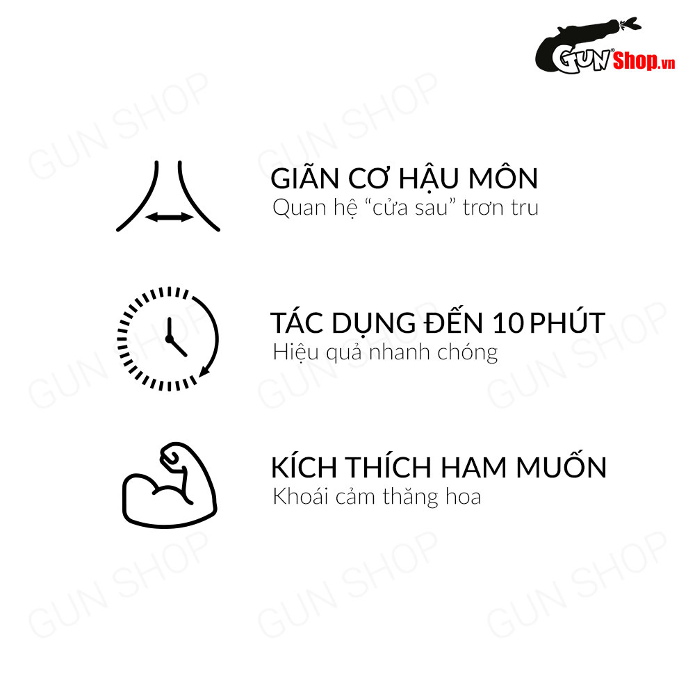 Thời gian tác dụng: lên đến 10 phút giúp kéo dài cảm xúc mãnh liệt